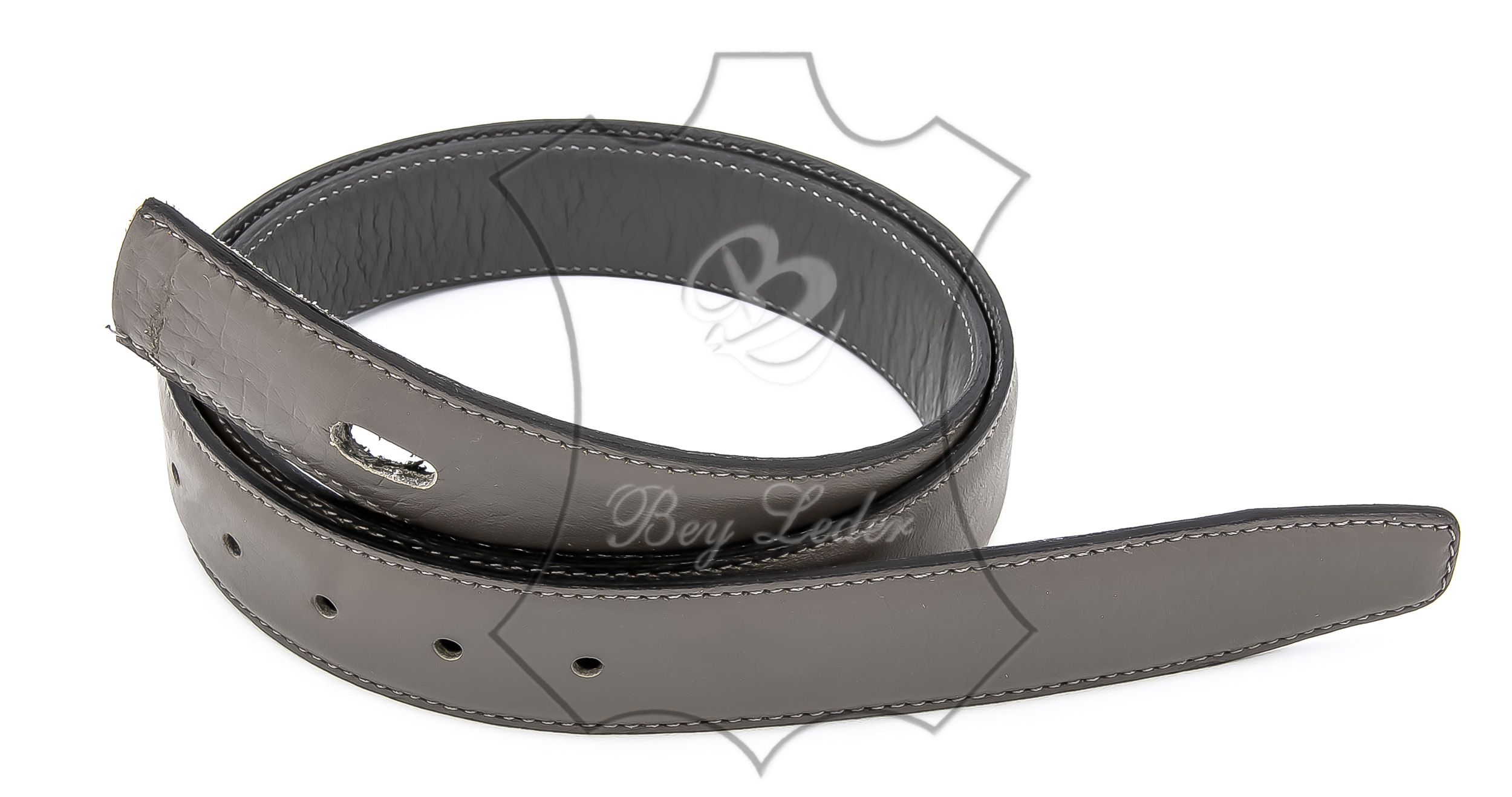 | Gürtel-grau - Breite 3,8 cm - von Größe 60 cm bis 130 cm - aus Nappaleder Zwei Kalbslederstreifen mit Nappaverarbeitung zusammengeklebt und an den Seiten zusammengenäht. OHNE SCHNALLE | ||