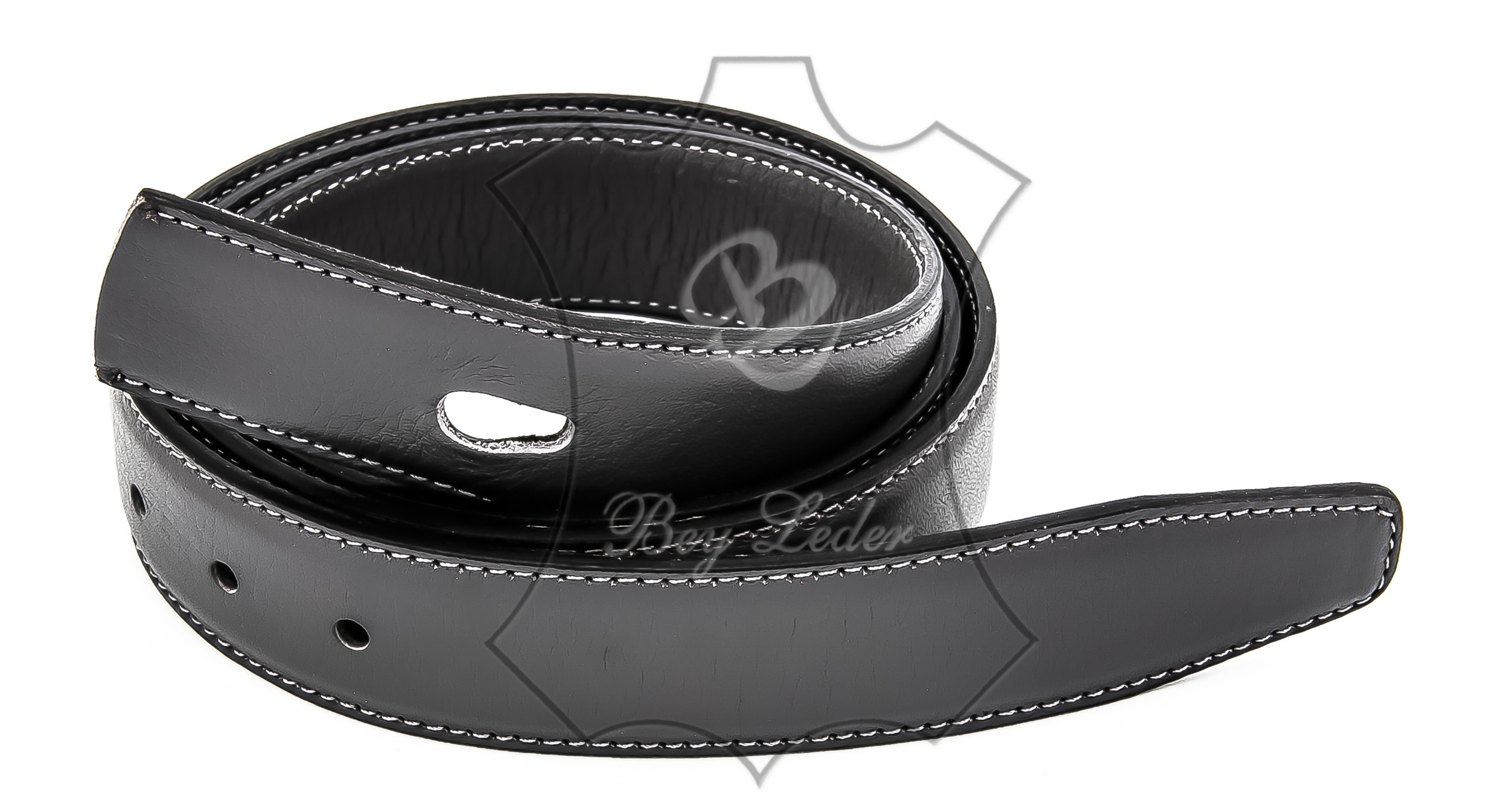 | Gürtel schwarz glatt - Breite 2,8 cm - von Größe 60 cm bis 130 cm - aus Nappaleder Zwei Kalbslederstreifen mit Nappaverarbeitung zusammengeklebt und an den Seiten zusammengenäht. OHNE SCHNALLE | ||