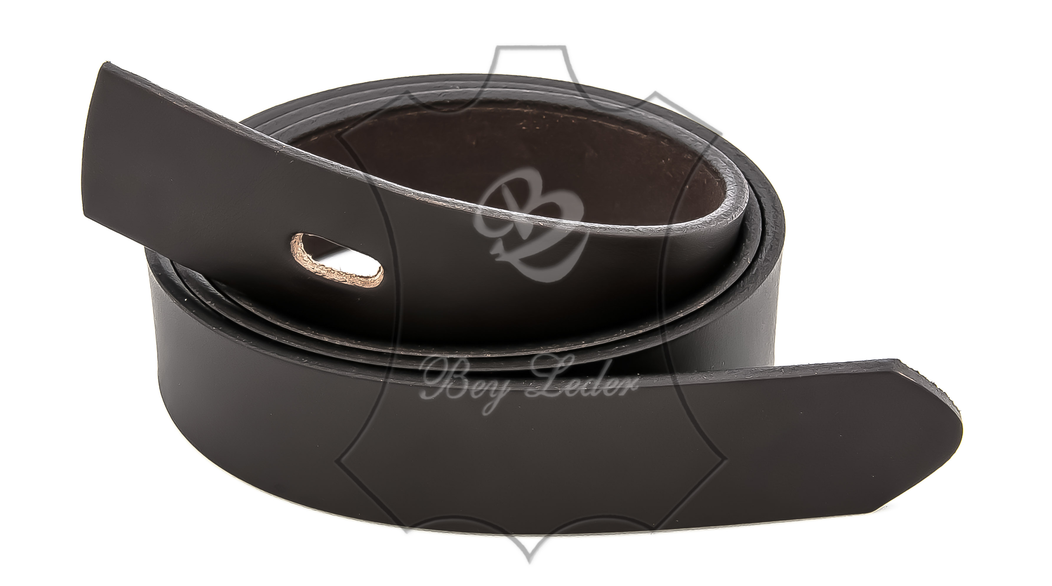 | Mokkabraun-glatt - Breite 2,8 cm - von Größe 60 cm bis 135 cm - aus Rinderleder - durchgefärbt OHNE SCHNALLE | ||